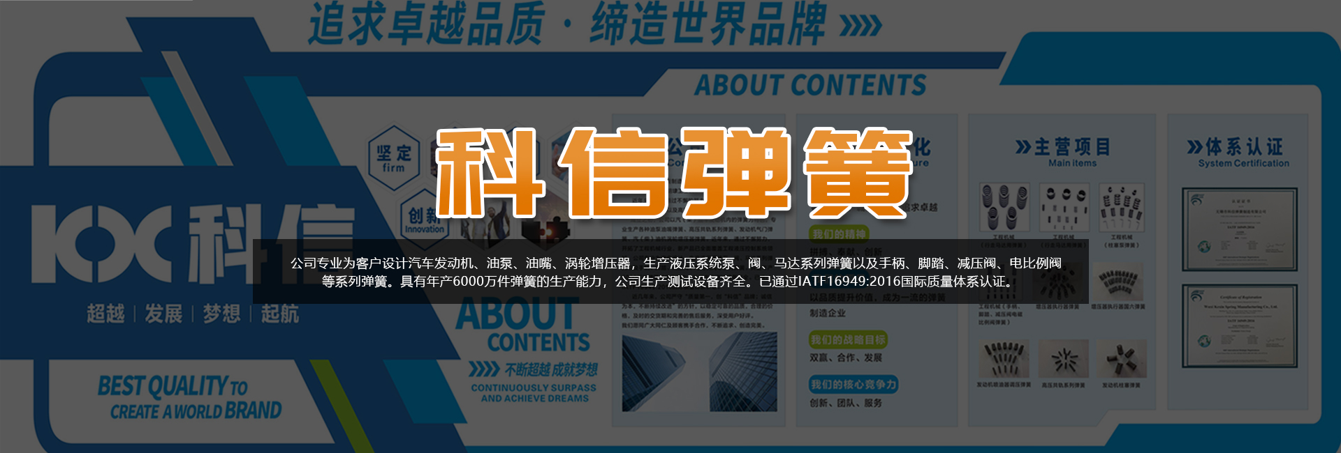 科信专业生产汽车涡轮增压器系列、工程液压马达系列弹簧、发动机系列和异型弹簧,质量全球领先。无论您订单的大小,无论是弹簧标准件还是定制弹簧,科信一直致力于在世界任何地方,都能实现卓越的制造能力和准时的交货服务。